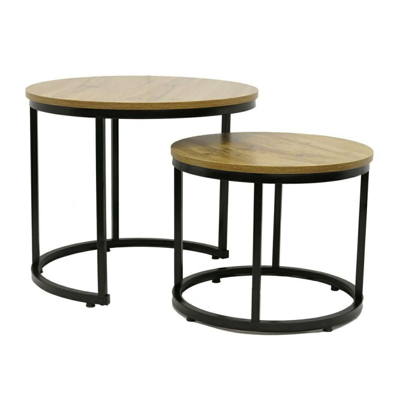 Hledáte vhodné doplnění do svého domova? Potřebujete moderní kousky, které vám nabídnou také dostatek funkčnosti. Elegantní a praktické řešení pro váš obývací pokoj získáte s touto sadou dvou moderních konferenčních stolků. Jejich moderní design spočívá v kulatém tvaru a kombinaci MDF desky v dubovém provedení s ocelovým rámem. Díky inovativnímu designu lze menší stolek elegantně zasunout pod větší, což šetří prostor a umožňuje flexibilní uspořádání.