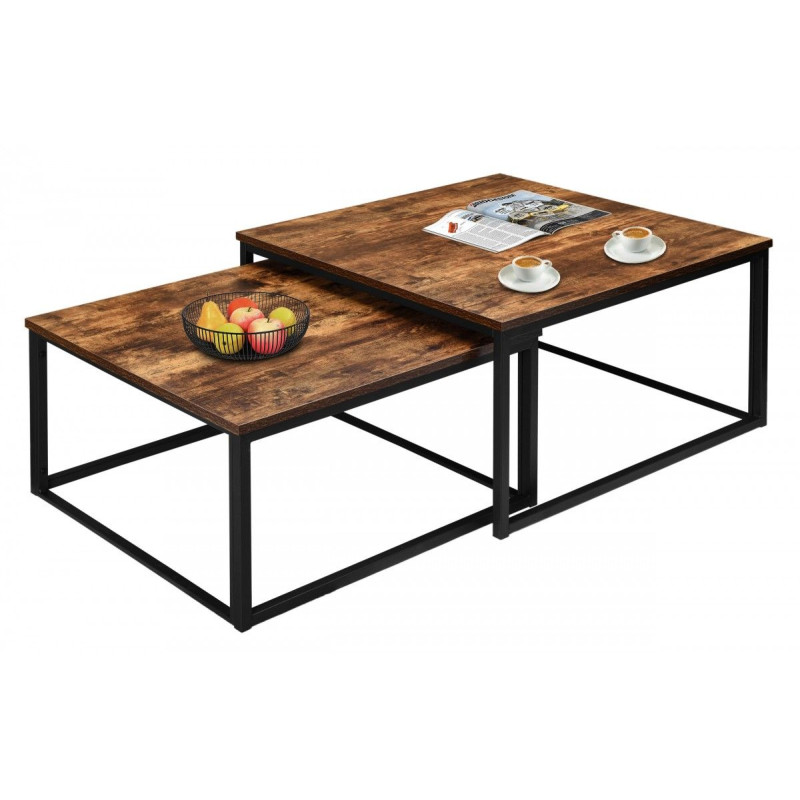 Dodejte svému domovu jedinečný industriální nádech s touto designovou 2-dílnou stolní sadou. Čtvercový kovový rám navazuje na starodávnou dubovou laminátovou desku jako dekorativní prvek hodící se do obývacího pokoje, chodby nebo kanceláře. Na stolky můžete umístit květináče, dekorace nebo časopisy, které byste chtěli mít vždy po ruce.