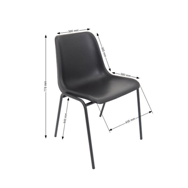 Kvalitní židle MAXI černá s kovovou konstrukcí, podsedákem a opěradlem z plastu. Pokud hledáte pohodlnou židli, na které by si mohli vaši studenti či zaměstnanci pohodlně psát poznámky, nepřehlédněte v naší nabídce židli MAXI chrom. Stabilní konstrukce s ocelovou kostrou zajišťuje židli dlouhou životnost. Podsedák a opěradlo je z kvalitního plastu a zajistí pohodlí a hlavně velmi snadnou údržbu. Údržba: Povrch nábytku otírejte vlhčeným hadříkem. Vyhněte se použití chemikálií.