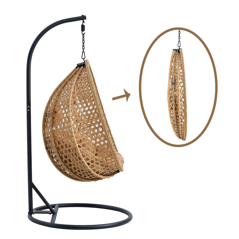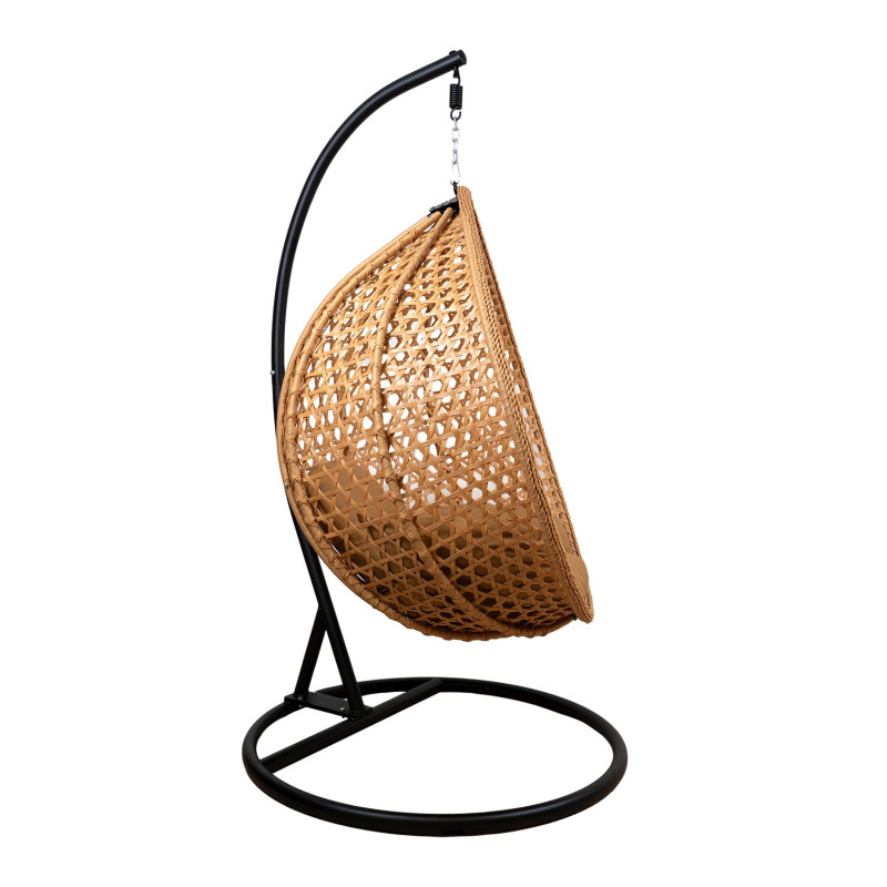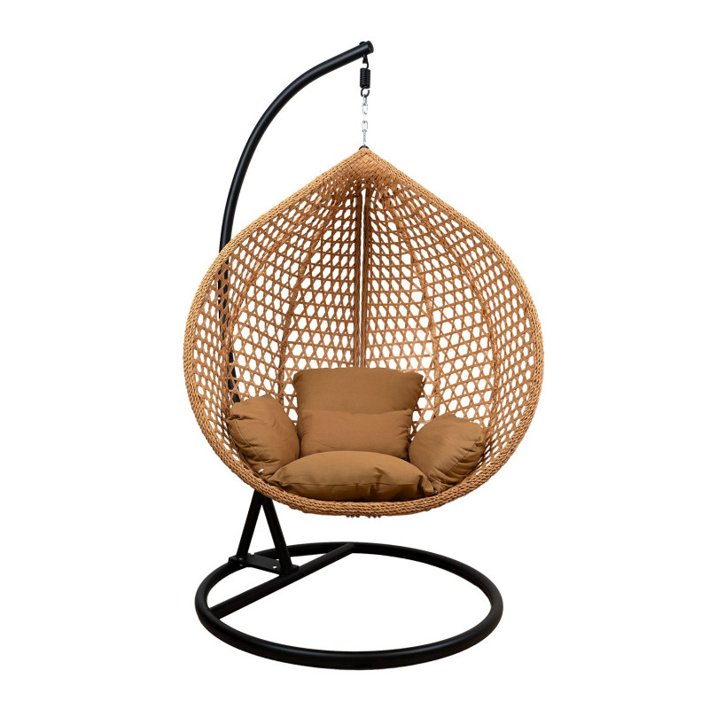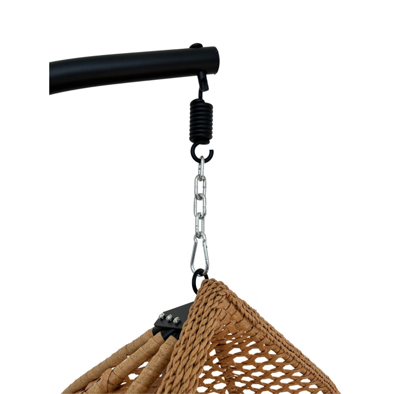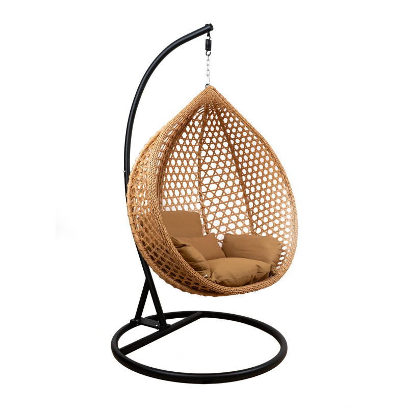 Černý sloup a základna z kovu mají na starosti maximální stabilitu a bezpečnost při houpání. Světle hnědý polštář, který je součástí, vám poskytne měkké a pohodlné sezení, které vás vždy vyzve k odpočinku. Základna má průměr 103 cm a výšku 195 cm, zatímco koš disponuje rozměry 115 x 76 x 131 cm, takže vám dopřeje dostatek prostoru pro pohodlné sezení.