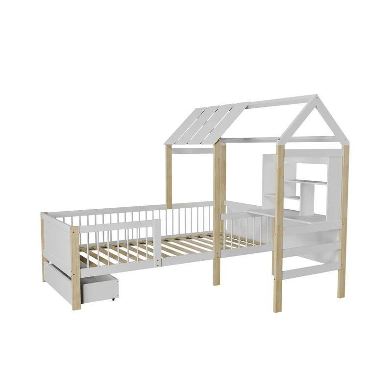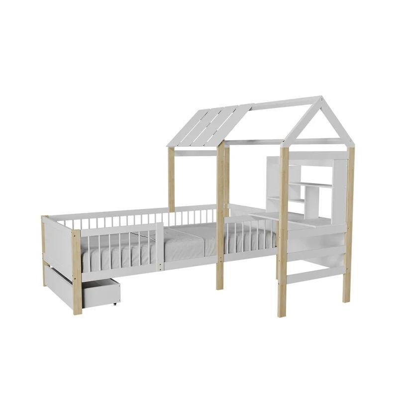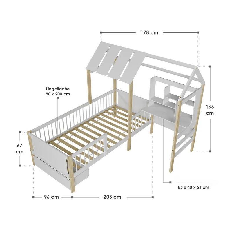Postel je vybavena výsuvnou zásuvkou, která nabízí výborné místo pro uložení hraček, peřin nebo oblečení. Nechybí ani integrovaný psací stůl, který poskytuje vhodné místo na kreslení či domácí úkoly. Tento prostor udrží dětský pokoj vždy přehledný.