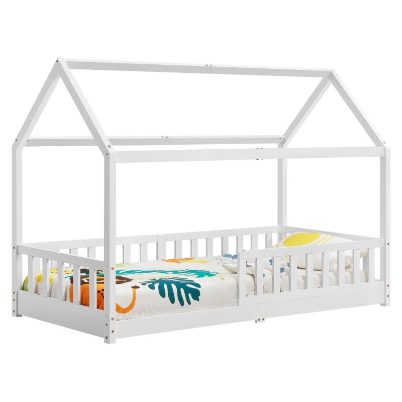 Moderní dětská postel s ochranou proti pádu, lamelovým roštům a stříškou je ideální pro dívky a chlapce od 3 do 10 let s lehací plochou 90 x 200 cm. Postel jako útulné místo na spaní a hraní zkrášlí každý dětský pokoj. Vzhled postele jako dům s otevřenou střechou nabízí mnoho možností. Dotvořte z této postele místo na hraní pomocí dekorací nebo střechy s baldachýnem. Brána nabízí bezpečnost, ochranu a umožňuje vám vystoupit na jedné straně. Pro dlouhodobé používání je dřevěná postel tou správnou volbou díky masivnímu a snadno udržovatelnému borovému dřevu.