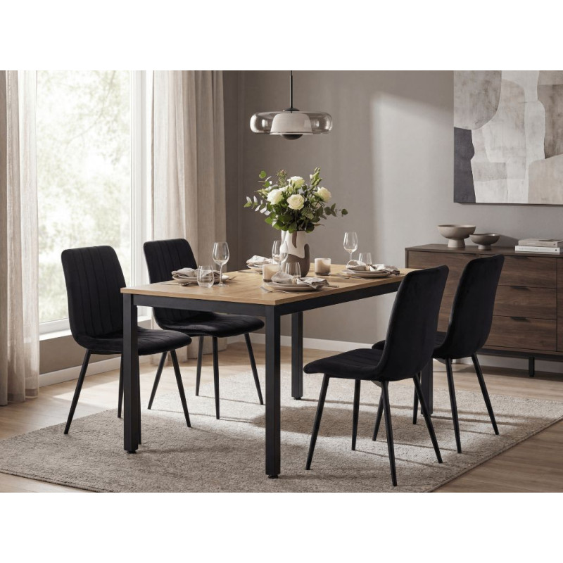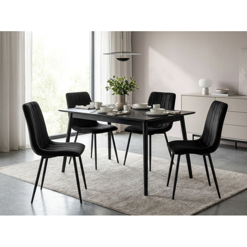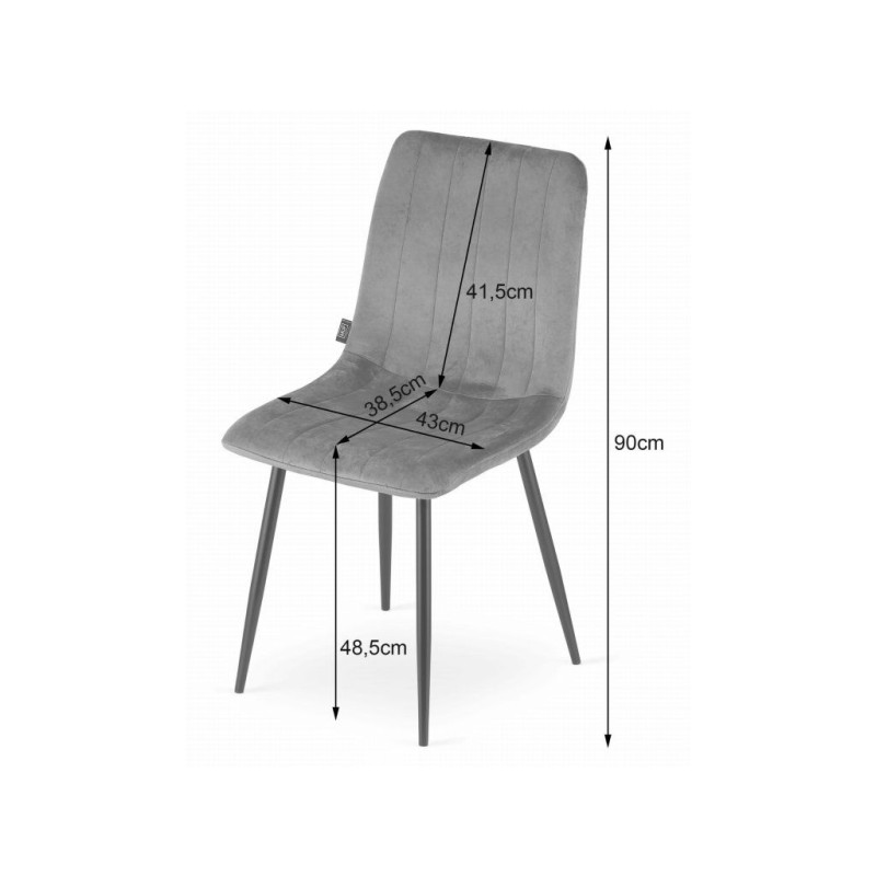 MateriálSametová tkanina: ČernáKov: ČernáRozměry (± 1 cm)Šířka: 43 cmHloubka: 51 cmVýška: 90 cmVýška sedu: 48,5 cmŠířka sedáku: 43 cmHloubka sedáku: 38,5 cmNosnost: 110 kgHmotnost: 4,2 kgProvedeníČalouněná jídeln...