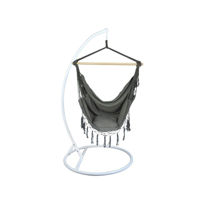 Materiál křesla70% bavlna30% polyesterDřevoMateriál stojanuOcelBarvaŠedáBíláRozměry křeslaŠířka: 110 cmVýška: 130 cmNosnost: 120 kgRozměry stojanuŠířka: 102 cmHloubka: 105 cmVýška: 195 cmMaximální zatížení: 130...