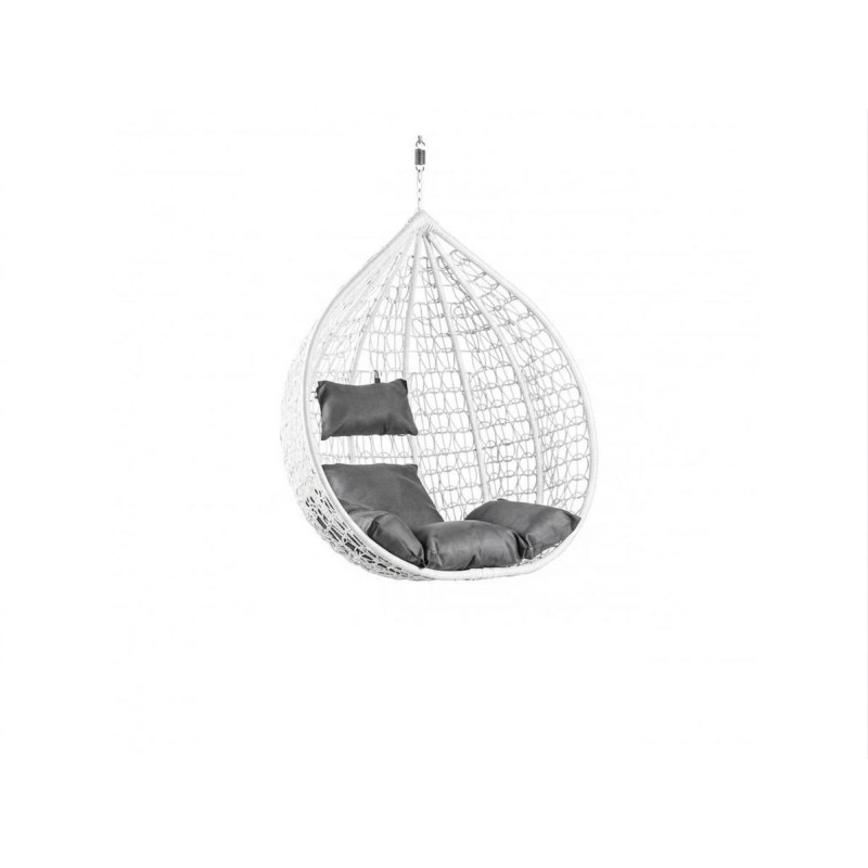 MateriálLátka: 100% polyesterUmělý ratanOcelový rámBarvaBíláTmavě šedáRozměry křeslaŠířka: 108 cmHloubka: 70 cmVýška: 115 cmNosnost: 150 kgProvedeníBalení obsahuje křeslo, polštáře a závěsnou pružinuStojan není...